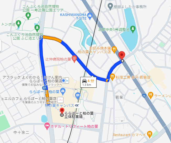 ・「ららぽーと柏の葉北館(ショップ&オフィス)」「三井ガーデンホテル柏の葉」を目標にお越しください。